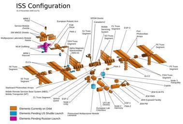 | Keywords: ISS configuration 2009-11 2 en.svg validSVG The ULF3 configuration of the International Space Station following the addition of ExPRESS Logistics Carriers 1 2 launched by the Space Shuttle Atlantis on STS-129 Public domain work modified by uploaders <br/><br/>Original <br/> http //www nasa gov/images/content/166624main_iss_config_012007 jpg<br/> http //www nasa gov/mission_pages/station/multimedia/scalemodel/index html 2009-11-18 NASA and James Humphreys Colds7ream PD-USGov-NASA Colds7ream 2009-11 translatable Obsolete diagrams of the International Space Station STS-129 |