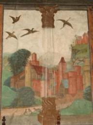 Keywords: Issogne saladellagiustizia.jpg en Particular of a fresco from XV century from Issogne castle in Aosta Valley Issogne castle Maestro di Wuillerine artist from XV century century 15 Castello di Issogne PD-Art
