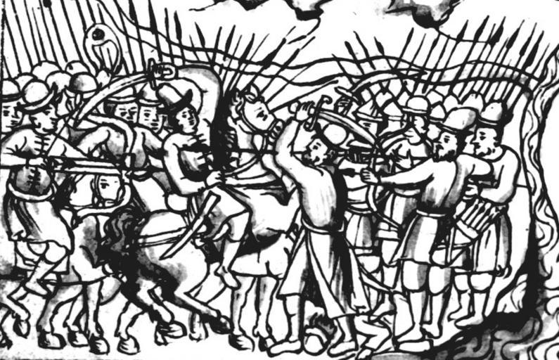 | Keywords: IstSib012 1.jpg Битва войск Чингиза и хана И тышака Исто ия Сиби ская ультимедиа Цент ГУ http //www mmedia nsu ru/vbook/vbook/obj8/MINIATURES htm 1697 - 1703 С У Ремезов Author died more than 70 years ago - public domain PD-old Remezov Chronicle |