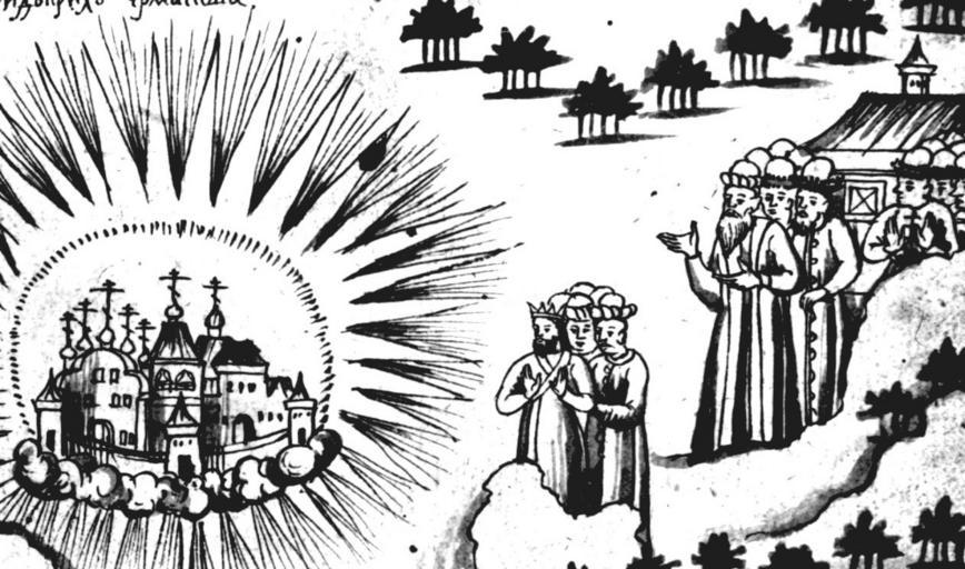 | Keywords: IstSib014 1.jpg Видение тата ам аметовым детям на месте будущего Тобольска Исто ия Сиби ская ультимедиа Цент ГУ http //www mmedia nsu ru/vbook/vbook/obj8/MINIATURES htm 1697 - 1703 С У Ремезов Author died more than 70 years ago - public domain PD-old Remezov Chronicle |