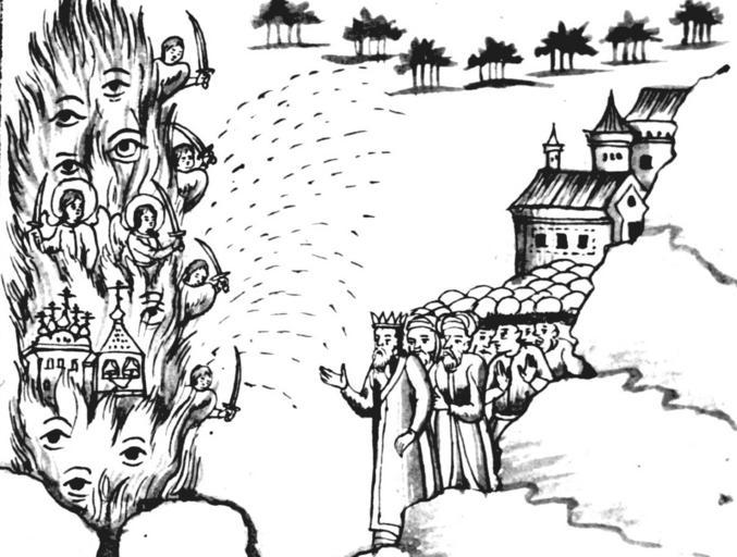 Keywords: IstSib016 1.jpg Огненный столп от земли до небеси - видение тата ам Исто ия Сиби ская ультимедиа Цент ГУ http //www mmedia nsu ru/vbook/vbook/obj8/MINIATURES htm 1697 - 1703 С У Ремезов Author died more than 70 years ago - public domain PD-old Remezov Chronicle |