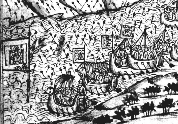 | Keywords: IstSib041 2.jpg Знамя со спасителевым об азом самовластно поиде п еди казачьих ст угов Исто ия Сиби ская ультимедиа Цент ГУ http //www mmedia nsu ru/vbook/vbook/obj8/MINIATURES htm 1697 - 1703 С У Ремезов Author died more than 70 years ago - public domain PD-old Remezov Chronicle |