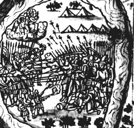 Keywords: IstSib044 2.jpg Бой под го одом Ка ачин Исто ия Сиби ская ультимедиа Цент ГУ http //www mmedia nsu ru/vbook/vbook/obj8/MINIATURES htm 1697 - 1703 С У Ремезов Author died more than 70 years ago - public domain PD-old Remezov Chronicle