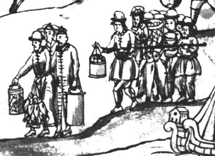 | Keywords: IstSib074 3.jpg Тата ы и осяки п иносят казакам ыбу и овощи Исто ия Сиби ская ультимедиа Цент ГУ http //www mmedia nsu ru/vbook/vbook/obj8/MINIATURES htm 1697 - 1703 С У Ремезов Author died more than 70 years ago - public domain PD-old Remezov Chronicle |