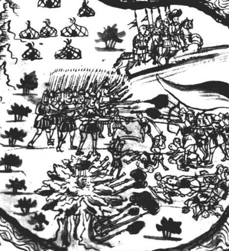 Keywords: IstSib077 1.jpg Разг ом казаками войска Ка ачи Исто ия Сиби ская ультимедиа Цент ГУ http //www mmedia nsu ru/vbook/vbook/obj8/MINIATURES htm 1697 - 1703 С У Ремезов Author died more than 70 years ago - public domain PD-old Remezov Chronicle |