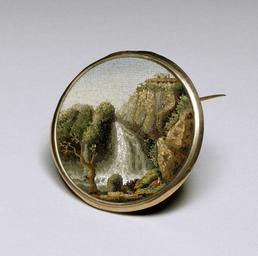| Keywords: Italian - Brooch with a Landscape Scene - Walters 4346.jpg Micromosaics crafted from miniature glass tesserae mosaic tiles decorated paperweights boxes and brooches which were popular as tourist art and souvenir jewelry The Vatican workshops were largely responsible for their production and featured many examples as part of the Vatican's contribution to 19th-century expositions The mosaics often represent genre scenes or scenic landscapes like this brooch which depicts the waterfalls at Tivoli a well-known site near Rome early Other date century 19 micromosaic glass tesserae on gold cm 4 45 diam accession number 43 46 13558 Collection of George W Kosmak date and mode of acquisition unknown Walters Art Museum Gift of Miss Katherine Kosmak and Mr George Kosmak 1975 Objects of Adornment Five Thousand Years of Jewelry from the Walters Art Gallery Baltimore Cooper-Hewitt National Design Museum New York; Chrysler Museum of Art Norfolk; Carnegie Museum of Art Pittsburgh; San Antonio Museum of Art San Antonio; Philbrook Museum of Art Tulsa; Honolulu Academy of Arts Honolulu; New Orleans Museum of Art New Orleans; Milwaukee Art Museum Milwaukee; Minneapolis Institute of Arts Minneapolis; Toledo Museum of Art Toledo; The John and Mable Ringling Museum of Art Sarasota 1984-1987 Bedazzled 5 000 Years of Jewelry from the Walters Art Museum Frist Center for the Visual Arts Nashville; The John and Mable Ringling Museum of Art Sarasota; The Walters Art Museum Baltimore 2006-2009 Shrunken Treasures Miniaturization in Books and Art The Walters Art Museum Baltimore 2009 Bedazzled 5 000 Years of Jewelry El Paso Museum of Art El Paso 2010 Jewelry - Ancient to Modern The Walters Art Gallery Baltimore 1979-1980 Jewelry from the Walters Art Museum and the Zucker Family Collection The Walters Art Gallery Baltimore 1987 place of origin Rome Italy Walters Art Museum license Jewellery in the Walters Art Museum Italian art in the Walters Art Museum Media contributed by the Walters Art Museum needs category review Micromosaics Waterfalls in Tivoli in art 19th-century jewellery Brooches |