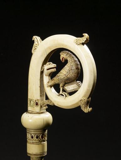 Keywords: Italian - Crozier Head with the Eagle of Saint John - Walters 71300 - View C.jpg This crosier possibly made in Sicily in the thirteenth century is made of ivory with a depiction of an eagle set inside the crook The curve of the crook is marked with small leaves or tendrils reminiscent of the swirling vines that form the shapes of illuminated initials in some manuscripts from this period The sprouting curve ends in the head of a dragon with his mouth open and ears flattened against his head and perched within this scroll is an eagle the symbol of John the Evangelist The eagle holds a book inscribed with abbreviated forms of the Latin words for John and Evangelist confirming that this is no ordinary bird but a symbol of the Gospel author The eagle turns his head to confront the dragon eye to eye - a depiction of the power of the Word of God to conquer evil The piece is inset with colored glass and there is evidence that parts of it were once set off with gold and paint century 13 Medieval ivory with polychrome and glass inlay cm 19 6 12 1 4 5 accession number 71 300 24336 Henri Daguerre Paris by purchase Henry Walters Baltimore date and mode of acquisition unknown Walters Art Museum Henry Walters Acquired by Henry Walters An Exhibition of the Treasures of The Walters Art Gallery The Walters Art Museum Baltimore; Pace Wildenstein Gallery New York; Smith College Museum of Art Northampton 1967 Ivory The Sumptuous Art The Walters Art Gallery Baltimore 1983-1984 Illuminated Manuscripts Masterpieces in Miniature The Walters Art Gallery Baltimore 1984-1985 Highlights from the Collection The Walters Art Gallery Baltimore 1998-2001 place of origin Sicily Italy Walters Art Museum license Medieval ivory in the Walters Art Museum Italian art in the Walters Art Museum Ivory croziers Media contributed by the Walters Art Museum needs category review |