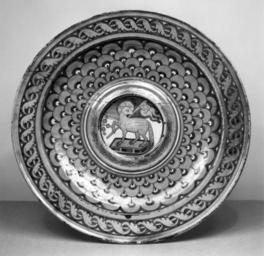 | Keywords: Italian - Ewer Basin with the Lamb of God - Walters 481320.jpg Basins with central rounded bosses to secure ewers and low sides to hold the water poured into them were popular table and toiletry items during the early 16th century The serpentine motif around the rim and the scale pattern on the basin were often found on maiolica produced in Deruta The Lamb of God with a cross banner and standing on a book is a traditional symbol of Christ ca 1510 1530 Renaissance earthenware with tin glaze maiolica and luster decoration cm 3 9 33 accession number 48 1320 11794 Rome Henry Walters Baltimore date of acquisition unknown by purchase Walters Art Museum Henry Walters Acquired by Henry Walters place of origin Deruta Italy Walters Art Museum license Italian Renaissance maiolica in the Walters Art Museum Italian art in the Walters Art Museum Media contributed by the Walters Art Museum needs category review Deruta maiolica |