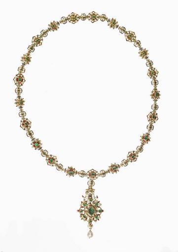 Keywords: Italian - Jeweled Collar - Walters 44508 - Front View A.jpg This splendid piece of jewelry which we would call a necklace could have been worn without or with a pendant around the neck or in the case of a woman the waist The pendant might be a large mounted jewel or an insignia of office or an order In the 19th or early 20th century the collar was repaired Apparently at that time someone added to the bottom of the pendant a tiny enameled figure of a white sheep-symbol of the great Habsburg military Order of the Golden Fleece This presumably added to the collar's value by introducing an exclusive historical association An American buyer would not have known that the presentation of the historical elements is incorrect ca 1550 1600 Renaissance gold enamel emeralds diamonds cm 73 3 accession number 44 508 9606 Henry Walters Baltimore date and mode of acquisition unknown Walters Art Museum Henry Walters Acquired by Henry Walters World of Wonder The Walters Art Gallery Baltimore 1971-1972 Jewelry - Ancient to Modern The Walters Art Gallery Baltimore 1979-1980 Objects of Adornment Five Thousand Years of Jewelry from the Walters Art Gallery Baltimore Cooper-Hewitt National Design Museum New York; Chrysler Museum of Art Norfolk; Carnegie Museum of Art Pittsburgh; San Antonio Museum of Art San Antonio; Philbrook Museum of Art Tulsa; Honolulu Academy of Arts Honolulu; New Orleans Museum of Art New Orleans; Milwaukee Art Museum Milwaukee; Minneapolis Institute of Arts Minneapolis; Toledo Museum of Art Toledo; The John and Mable Ringling Museum of Art Sarasota 1984-1987 Jewelry from the Walters Art Museum and the Zucker Family Collection The Walters Art Gallery Baltimore 1987 place of origin Italy Walters Art Museum license Renaissance applied arts in the Walters Art Museum Chains of the Order of the Golden Fleece Jewellery in the Walters Art Museum Italian art in the Walters Art Museum Media contributed by the Walters Art Museum needs category review Media contributed by the Walters Art Museum needs artist review |