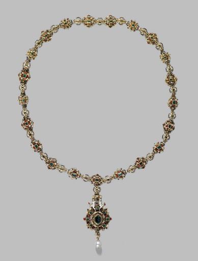 Keywords: Italian - Jeweled Collar - Walters 44508 - Front View B.jpg This splendid piece of jewelry which we would call a necklace could have been worn without or with a pendant around the neck or in the case of a woman the waist The pendant might be a large mounted jewel or an insignia of office or an order In the 19th or early 20th century the collar was repaired Apparently at that time someone added to the bottom of the pendant a tiny enameled figure of a white sheep-symbol of the great Habsburg military Order of the Golden Fleece This presumably added to the collar's value by introducing an exclusive historical association An American buyer would not have known that the presentation of the historical elements is incorrect ca 1550 1600 Renaissance gold enamel emeralds diamonds cm 73 3 accession number 44 508 9606 Henry Walters Baltimore date and mode of acquisition unknown Walters Art Museum Henry Walters Acquired by Henry Walters World of Wonder The Walters Art Gallery Baltimore 1971-1972 Jewelry - Ancient to Modern The Walters Art Gallery Baltimore 1979-1980 Objects of Adornment Five Thousand Years of Jewelry from the Walters Art Gallery Baltimore Cooper-Hewitt National Design Museum New York; Chrysler Museum of Art Norfolk; Carnegie Museum of Art Pittsburgh; San Antonio Museum of Art San Antonio; Philbrook Museum of Art Tulsa; Honolulu Academy of Arts Honolulu; New Orleans Museum of Art New Orleans; Milwaukee Art Museum Milwaukee; Minneapolis Institute of Arts Minneapolis; Toledo Museum of Art Toledo; The John and Mable Ringling Museum of Art Sarasota 1984-1987 Jewelry from the Walters Art Museum and the Zucker Family Collection The Walters Art Gallery Baltimore 1987 place of origin Italy Walters Art Museum license Renaissance applied arts in the Walters Art Museum Chains of the Order of the Golden Fleece Jewellery in the Walters Art Museum Italian art in the Walters Art Museum Media contributed by the Walters Art Museum needs category review Media contributed by the Walters Art Museum needs artist review |