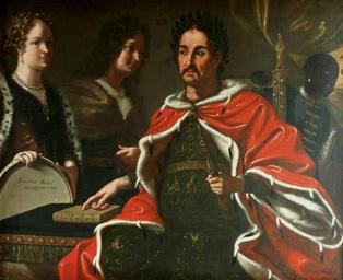 | Keywords: Italian John III Sobieski.jpg Italy 1697 oil canvas Institution Łęczyca Castle accession number object history ca 1697 commission Jakub Ludwik Sobieski credit line Prawdziwi obracz Magnificenczowy caption left pl The true likness of His Highness TIN / Hac Lege lego 1697 caption left la I read with/by this law Depiction of a deceased monarch 1696 pointing to a book entitled Hac Lege lego and accompanied by his son Jakub Ludwik Sobieski and his wife Hedwig Elisabeth of Neuburg is interpreted as a political allegory of Jakub Ludwik's right to the elective crown of the Polish-Lithuanian Commonwealth Państwowy Instytut Sztuki 1992 Biuletyn historii sztuki Vol 54 p 122 http //zamek leczyca info pl/dodatki/2013/EDD/3 jpg zamek leczyca info pl See below PD-old-100 DEFAULTSORT 1697; John III Sobieski 17th-century unidentified painters Łęczyca Castle - Interior John III of Poland Jakub Ludwik Sobieski Hedwig Elisabeth of the Palatinate 1697 portrait paintings M 17th-century oil portraits of men at three-quarter length 17th-century portrait paintings in Poland 17th-century portrait paintings with black slaves Baroque allegorical paintings Portrait paintings with ermine clothing Legal history of Polish-Lithuanian Commonwealth Lynx clothing in art Portraits holding sceptres Royal elections in Poland |