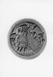 | Keywords: Italian - Mirror Case with Two Lovers - Walters 71107.jpg This mirror cover of unusual quality shows a young man offering his lady a flower The figures stand on a patch of carefully rendered turf between two trees against a crosshatched background The man wears a houppelande with large dagged-edged sleeves and a big cloth cap or chaperon The lady's gown also has pendant sleeves with elaborate facings; she wears a bourrelet on her head A band of roping surrounds the scene and two holes for attachment are visible When in the 18th century the cover and its mate were drawn by Jan Ivan Gravenbroeck for the catalogue of the collection of Pietro di Giacomo Gradenigo in Venice its corner leaf projections now lost were still intact Above the young man's head is inscribed the work PRENES the first word of a motto which is completed on the pendant mirror case in the Louvre depicting a similar couple Here the inscription reads EN GRE Taken together the two parts of the motto may be translated Take kindly The full phrase is found in a stanza of Christine de Pisan's poetry Prenez en gre le don de votre amant Take kindly the gift of your lover Because the motto was used in France and Burgundy the ivory has often been called French Flemish or Burgundian However all of the features of this example including the particular balance of the landscape elements and the figures are found more frequently in works from north Italy The crisp carving and stylized postures of the figures relate to works attributed to Milan and Lombardy where significantly the language like the motto was French The attitude of the figures facing each other in profile is that of the conventional Italian wedding portrayal of the 15th century The strict profile confrontation contrasts strongly with the interaction of the two figures in similar scenes on French mirror cases ca 1410 early Renaissance ivory D 5/16 x Diam 3 1/4 in 0 85 x 8 21 cm accession number 71 107 10459 Pietro di Giacomo Gradenigo Venice ca 1750 by purchase Jacques Seligmann Paris date of acquisition unknown by purchase Henry Walters city Baltimore Walters Art Museum Henry Walters Acquired by Henry Walters 1914 Transcription above the young man's head PRENES The International Style The Arts in Europe Around 1400 The Walters Art Gallery Baltimore 1962 The Medieval Garden Spencer Museum of Art Lawrence; Dumbarton Oaks Washington 1983 The Taste of Maryland Art Collecting in Maryland 1800-1934 The Walters Art Gallery Baltimore 1984 Medieval Games of Love and War The Walters Art Gallery Baltimore 1995-1996 Images in Ivory Precious Objects of the Gothic Age The Detroit Institute of Arts Detroit; The Walters Art Gallery Baltimore 1997 place of origin Milan Italy Walters Art Museum license Renaissance applied arts in the Walters Art Museum Italian carved ivory mirror cases in the Walters Art Museum 15th-century carved ivory mirror cases Couples in love in art Media contributed by the Walters Art Museum needs category review |