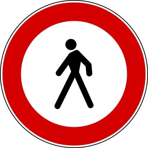 | View Original: | Italian traffic signs - transito vietato ai pedoni.svg (600x600) | |||