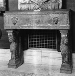 | Keywords: Italian - Wall Fountain - Walters 27320 - Installation.jpg This wall fountain is inspired by classical models Water would originally have spouted from the mouths of the two lions The unidentified coat of arms belonged to the patron that paid for the fountain ca 1450 1500 Renaissance Red Verona marble cm 94 104 4 accession number 27 320 18579 Henry Walters Baltimore date and mode ofa cquisition unknown Walters Art Museum Henry Walters Acquired by Henry Walters place of origin Po Region in present-day Italy Walters Art Museum license Renaissance sculpture in the Walters Art Museum Italian art in the Walters Art Museum Media contributed by the Walters Art Museum needs category review |