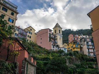 Keywords: italy cinque terre mediterranean europe coast tourism italian picturesque scenic riomaggiare landscape travel nature view scenery hill green summer outdoor architecture famous town sky clouds