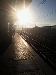 Keywords: italy depot train station platform sunset sky clouds sun bright reflections outside tracks railroad railway