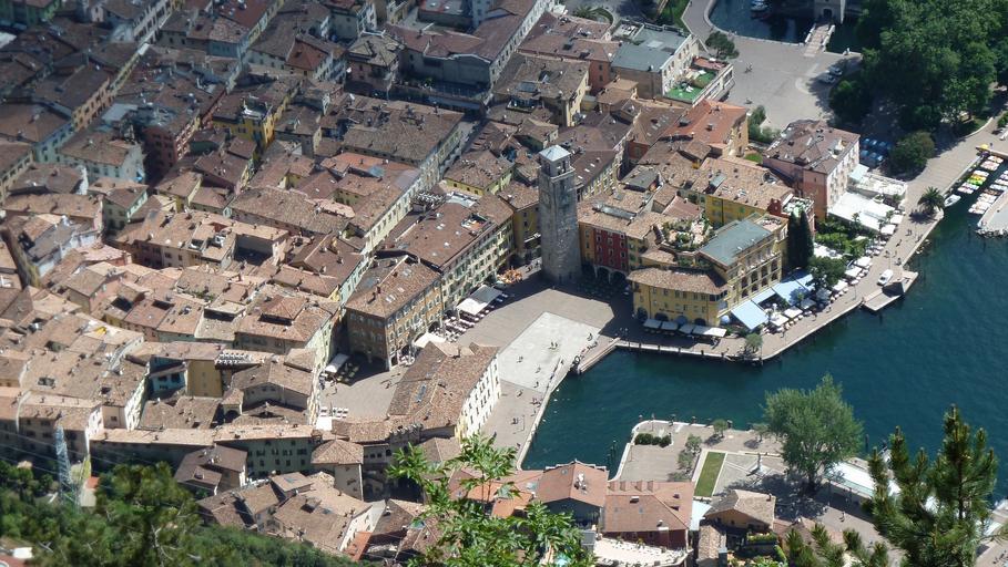 Keywords: italy garda riva del garda aerial view city port boats holidays