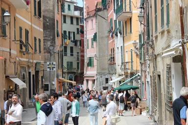Keywords: italy liguria cinque terre vernazza houses colors people tourists windows road