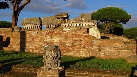 Keywords: italy ostia antica ruins archaeological site ancient times roman historically history stone architecture old wall tree palm sky