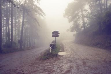 Keywords: italy tuscany road fog misty autumn foggy crossroads