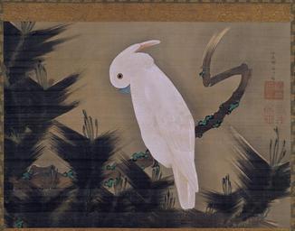 | Keywords: Itō Jakuchū - White Cockatoo on a Pine Branch - Google Art Project.jpg 1716 1716 1800 1800 Itō Male 565021 Jakuchū Japanese 1716 - 1800 /collection/museum-of-fine-arts-boston/artwork/white-cockatoo-on-a-pine-branch-ito-jakuchu/567016/ Itō Jakuchū By /artist/ito-jakuchu/4128331/ 4128331 /collection/museum-of-fine-arts-boston/ Museum of Fine Arts Boston 509114 http //www mfa org/ 12/17/2011 11 00 52 AM /collection/museum-of-fine-arts-boston/artwork/white-cockatoo-on-a-pine-branch-ito-jakuchu/567016/ 1780 late 18th century Edo period Hanging scroll; ink and color on silk 401 567016 False 1800 late 18th century 3/24/2012 4 16 00 AM 50 1493 http //www mfa org/collections/object/white-cockatoo-on-a-pine-branch-254564 Bequest of Charles Bain Hoyt Charles Bain Hoyt Collection Museum of Fine Arts Boston All Rights Reserved painting 1780 1810 w556 x h401 mm late 18th century False 1 27363184079602 Object white-cockatoo-on-a-pine-branch-ito-jakuchu White Cockatoo on a Pine Branch w 556 Hanging scroll; ink and color on silk Period _era _dynasty _reign Edo period special url_id UAFyL-Y1Y-KG1w PD-old-100-1923 1800 Google Art Project works by Ito Jakuchu Ito Jakuchu Cacatua alba Art of Japan in the Museum of Fine Arts Boston |
