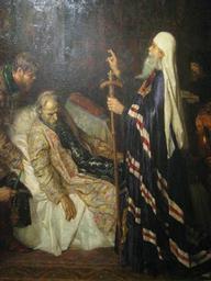 | Keywords: Ivan IV becoming monk before death by P. Geller detail01.jpg Artwork creator Petr Geller П И Гелле ит ополит пе ед кончиной Иоанна Г озного посвящает его в схиму<br> 1887 Oil canvas cm Russian Museum object history credit line также изоб ажены мит ополит Дионисий духовник ца я а химанд ит Феодосий Вятко Бо ис Годунов и Б Бельский accession number own by shakko PD-Art Petr Geller Minions of Clio exhibition Moscow 2011 Geller Ivan IV of Russia in history paintings Uploaded by Shakko/Photos History paintings in the Russian Museum |