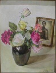 | Keywords: Ivan Vavpotič - Tihožitje s kraljem Petrom.jpg Artwork creator Ivan Vavpotič s 1940 oil canvas cm 52 40 Hest Gallery http //galerijahest si/si/dela/479/ PD-old-auto 1943 Paintings by Ivan Vavpotič Hest Gallery 1940s paintings in Slovenia 20th-century still life paintings in Slovenia Vases in still-life paintings 20th-century oil on canvas paintings in Slovenia Still-life paintings with portraits Peter II of Yugoslavia Still life paintings of flowers 1940s still-life paintings Roses in art |