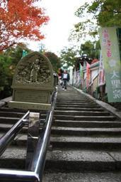 Keywords: iwakuni japan steps trees outside sky temple people landmark rail railing macro close-up