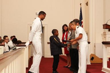 | Keywords: IWTC Corry Station Graduates Saturday Scholars 161119-N-XX082-008.jpg en 161119-N-XX082-008 PENSACOLA Fla A Saturday scholar accompanied by his mentor from Information Warfare Training Command Corry Station receives a certificate of completion at a graduation ceremony held at the Naval Air Station Pensacola chapel Navy A and C school students teamed up with 58 New Warrington Elementary School students to complete the Saturday Scholars program encouraging science technology engineering and math concepts IWTC Corry Station partnered with the Escambia County school district continuing a 33-year-old tradition of offering the program to a local school Unit Center for Information Warfare Training DVIDS Tags Corry Station; Pensacola; Saturday Scholars; Information Warfare; IW; Information Warfare Training Command 2016-11-19 Nov 19 2016 https //www dvidshub net/image/3005424/iwtc-corry-station-graduates-saturday-scholars 161119-N-XX082-008 2016-11-21 16 53 PENSACOLA FL US PD-USGov-Military-Navy Naval Air Station Pensacola Images from DoD uploaded by Fæ |