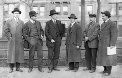 | Keywords: IWW Committee Sullivan Caron Plunkett Turner Woolman.jpg In July 1914 two members of the Lettish section of the Anarchist Red Cross ”Charles Berg and Carl Hanson along with Industrial Workers of the World IWW member Arthur Caron ”began collecting dynamite they had obtained from Russia storing it at the apartment of another Anarchist Red Cross member Bain News Service publisher Industrial Workers of the World Committee ”Sullivan Caron Plunkett Turner Woolman between ca 1910 and ca 1915 1 negative glass ; 5 x 7 in or smaller Notes Title from unverified data provided by the Bain News Service on the negatives or caption cards Forms part of George Grantham Bain Collection Library of Congress Format Glass negatives Rights Info No known restrictions on publication Repository Library of Congress Prints and Photographs Division Washington D C 20540 USA http //hdl loc gov/loc pnp/pp print hdl loc gov/loc pnp/pp print General information about the Bain Collection is available at http //hdl loc gov/loc pnp/pp ggbain hdl loc gov/loc pnp/pp ggbain Persistent URL http //hdl loc gov/loc pnp/ggbain 15887 hdl loc gov/loc pnp/ggbain 15887 Call Number LC-B2- 3040-1 http //www flickr com/photos/library_of_congress/5285330161/ I W W Committee--Sullivan Caron Plunkett Turner Woolman LOC LOC-image ggbain 15887 http //www flickr com/photos/8623220 N02 The Library of Congress PD-Bain The Library of Congress http //flickr com/photos/8623220 N02/5285330161 16 15 2 January 2011 UTC pd Members of the Industrial Workers of the World Anarchists Communists of the United States Black and white photographs of men Standing people Men wearing coats Charles Robert Plunkett Arthur Caron |