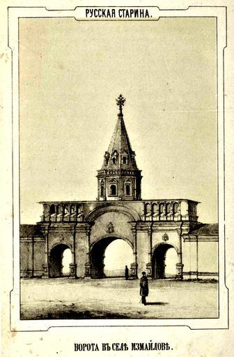 Keywords: Izmaylovsky dvorets. Vorota.jpg Измайловский дво ец Пе едние ао ота Госуда ева Дво а с адв атной башней ru Снеги ев Иван ихайлович «Дво цовое ца ское село Измайлово одовая вотчина Романовых ныне иколаевская измайловская военная богадельня» осква тип Шюмин и Глушкова 1866 1866 Author PD-old-100 Original upload log ru wikipedia Izmaylovsky_dvorets _Vorota jpg wikitable - 2014-02-06 05 29 12801950 1696446 bytes Gerodian <nowiki></nowiki> - 2014-02-03 10 04 12801877 1081293 bytes Gerodian <nowiki> Изоб ажение Описание Измайловский дво ец Во ота Источник Снеги ев Иван ихайлович «Дво цовое ца ское село Измайлово од </nowiki> __NOTOC__ Russkaya Starina by Snegirev Tsar s Court in Izmaylovo Historical images of Izmaylovo |