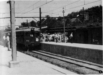 Keywords: Izumi-Sunagawa Station in 1946.jpg ja 昭和21年の和泉砂 駅 旧阪和電気鉄道クタ750形751が見える 1946 天王寺鉄道管理 三十年写 史 P41 author PD-Japan-oldphoto Stations in Osaka prefecture photographed before 1956 Stations of Hanwa Line
