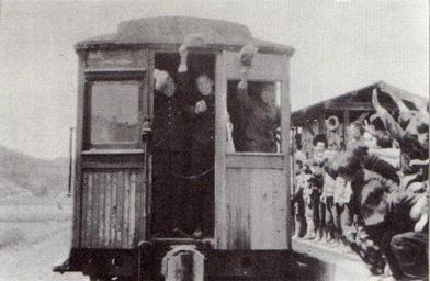 | Keywords: Izushi Railway Shimaguchi station.jpg en Shimaguchi station of Izushi Railway in 1938 ja 1938年の出石鉄道島口駅 Scanned from page 162 of ひょうご懐かしの鉄道 unknown photographer scanned by Tam0031 1938 The photo was taken in 1938 therefore under the old copyright law of Japan the copyright of the photo had already expired Toyooka Hyogo Train stations in Hyogo prefecture Stations in Hyogo prefecture photographed before 1956 Defunct rail transport companies of Japan PD-Japan-oldphoto | ||||
