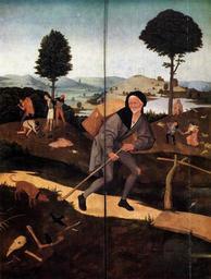 | Keywords: J. Bosch Escorial Hay Wagon triptych (outer panels).jpg after LangSwitch Hieronymus Jheronimus Bosch The Hay Wagon LangSwitch exterior buitenzijde LangSwitch Der Hausierer The Pedlar El vendedor ambulante Il venditore ambulante De marskramer between 1510 1520 Oil on panel cm 140 100 Institution Monasterio de El Escorial Madrid Object history by 1563 Felipe de Guevara 1500-1563 ProvenanceEvent 1563 inheritance Beatrix de Haro Philip II of Spain Felipe II de España Philips II van Spanje 1527-1598 Beatrix de Haro ProvenanceEvent 1574-04 transfer LangSwitch das the el au het Monasterio de El Escorial San Lorenzo de El Escorial ˜Una tabla de pintura con dos puertas en que está pintado de pincel un carro de heno que toman del todos los estados que denota la vanidad tras que andan y encima del heno una figura del angel de la guarda y el demonio y otras figuras y en lo alto de la tabla Dios padre y en la tabla de mano derecha la creación de Adan y otras figuras de la misma historia y en la mano izquierda el Infierno y las penas de los pecados mortales que tien 5 pies de alto y 4 de ancho ™ Anonymous 57487 After LangSwitch Hieronymus Jheronimus Bosch Marskramer ~ 1516 LangSwitch or later of later cm 140 100 Anonymous 40002083 LangSwitch Hieronymus Jheronimus Bosch/ LangSwitch Hieronymus Jheronimus Bosch Le Chariot de foin ~ 1516 / after 1516 http //www wga hu/html/b/bosch/4haywain/11eouter html LangSwitch Hieronymus Jheronimus Bosch Triptych of Haywain outer wings 1500-1502 cm 135 90 Fraenger Wilhelm 1994 Hieronymus Bosch Basel The Gordon and Breach Publishing Group G+B Arts International ISBN 976-6410-40-2 p 124 LangSwitch als as comme als The Traveler <br /> LangSwitch Hieronymus Jheronimus Bosch Hooiwagen ~ 1516 LangSwitch or later of later LangSwitch closed gesloten Marskramer cm 140 100 color image Exhibition history Les chefs-d'oeuvre du Musée du Prado 114 19 WGA link 2537 http //www wga hu/art/b/bosch/4haywain/11eouter jpg http //www wga hu/html/b/bosch/4haywain/11eouter html Other versions Wayfarer outside of Haywain tripych jpg Version from en wikipedia Hieronymus Bosch 070 jpg Possible original at the Prado Madrid painting religious Netherlandish 1501-1550 PD-old-100 The Haywain Triptych El Escorial 50 WGA form painting WGA type religious WGA School Netherlandish WGA time period 1501-1550 Details of paintings without complete work |