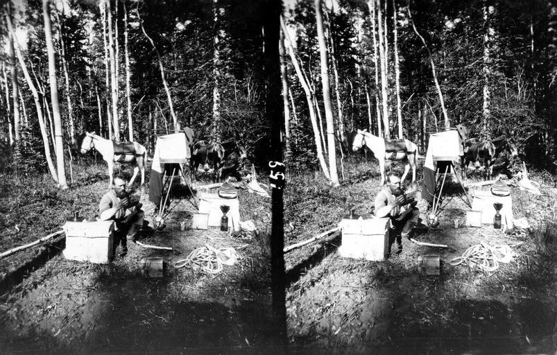 | Keywords: stereoscopic stereophotography stereophotographs historical usgs history geology mapping black and white blackandwhite bnw stereograph blackandwhite monochrome outdoor black and white J.K. Hillers at work as photographer on the Aquarius Plateau in July 1875. Utah. (Stereoscopic view). Published as lower photo opposite p. 495 in Utah State Historical Society. Utah Historical Quarterly, v. 16 - 17. 1948 - 49. (Possibly by A.H. Thompson or G.K. Gilbert) J.K. Hillers at work as photographer on the Aquarius Plateau in July 1875. Utah. (Stereoscopic view). Published as lower photo opposite p. 495 in Utah State Historical Society. Utah Historical Quarterly, v. 16 - 17. 1948 - 49. (Possibly by A.H. Thompson or G.K. Gilbert) |
