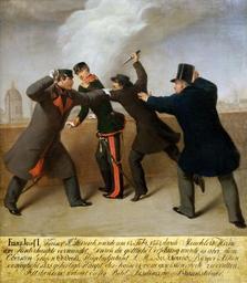 | Keywords: J.Reiner - Attentat auf Kaiser Franz Joseph.jpg de Das Attentat auf Kaiser Franz Joseph I am 18 2 1853 Ölgemälde v J J Reiner 1853 en Oil painting by J J Reiner of the assassination attempt on Austrian Emperor Franz Joseph 1853 Institution Wien Museum Karlsplatz 1853 J J Reiner PD-art-100 Paintings of Franz Joseph I of Austria Assassination Paintings in the Wien Museum Events in Austria 1853 in Austria O ™Donell von Tyrconell | ||||