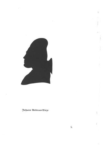 | Keywords: JA Dietze L.jpg Schattenriss des Bibliothekars Johann Andreas Dietze 1729-1785 in der de Silhouetten-Sammlung Schubert Tafel L Authority control p 100107338 24940916 no /91/025566 Hermann Bräuning-Oktavio Silhouetten aus der Wertherzeit Darmstadt 1926 1779 Carl Schubert PD-old-100 Librarians of the SUB Göttingen 1729 births 1785 deaths Georg-August University of Göttingen faculty Carl Schubert collection of silhouettes 1779 in art University of Mainz | ||||