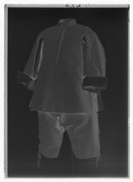 | Keywords: Jacka av grå kamlott. Tillhört Karl X Gustav (1622-1660) - Livrustkammaren - 9920-negative.tif Denna dräkt består av jacka byxor och kanoner av grå kamlott d'Hollande Materialet är gråbrun yllekamlott med en vådbredd av 77 cm utan stad 20x8 5 tr/cm2 Varpen består av 1ljus och 1 mörk tråd som tvinnats åt höger tillsammans och inslaget består av 3 ljusa otvinnade trådar Staden utgörs av enbart 2 vita trådar <br/><br/>Jackan som till sin form mycket påminner om jackan till dräkt nr 3419 är sydd av 4 storastycken som vidgats i sidorna och rundats i kanten Den har ca 37 cm öppna skört i sidornaoch bak Jackan har sytts ihop med korta sidosömmar och mitt bak endast till midjan Ärmarna består av 2 stycken och har öppna framsömmar Jackan är mitt fram 69 cm lång ståndkragen oräknad denna är 5 cm hög mitt fram och mitt bak 3 5 cm Mitt bak är jackan 73cm lång utan krage Den har sytts så att dess korta sidosömmar sömmen mitt bak ochaxelsömmarna sytts samman från baksidan <br/><br/>Ärmarna har sytts ihop så att överstyckena ligger ovanpå de undre i den utsvängda baksömmenoch ärmarna har sedan trätts genom ärmhålet Endast den lilla korta framsömmen 15 cmlång nedanför det ca 35 cm långa sprundet har sytts ihop från baksidan I baksömmen påärmen är den nedre - raka - delen ca 15 cm lång öppen för att kunna bilda uppslag och harhär försetts med en skoning av brun rips Jackan verkar ej ha haft något mellanfoder men iärmuppslagen sitter papper mellan fodret och tyget Detta utgör styvnad för denursprungliga fastsydda garneringen av silverspets ty täta hål efter stygn visar att mansytt genom pappret det har varit en ca 9 cm bred spetsbesättning Jackan är fodrad medsilvermoiré med en vådbredd av 49 cm utan stad 64x14 tr/cm2 Varp och inslag är av vittotvinnat silke I varje inslag ligger på rätan en silverlan Stad 0 7 cm 6 gröna 6 gula 6 gröna 6 gula 6 gröna trådar samt 1 tjock vit - ripsbindning Mitt i tyget syns en randefter vattringen <br/><br/>Jackans foder är skuret på samma sätt som tyget i övrigt dock har man omedelbart ovanförsidoskörtets öppning satt in 2 horisontella kilar för att göra plagget mindre åtstramande De är något varierande i storlek och placering men ca 1 cm långa Fram har jackan en helobruten rad av knapphål på vänster sida vilket ju icke är fallet med jackan nr 23 Det ärinalles 29 knapphål 3 5 cm långa och sydda med brunt högertvinnat silke över silkestråd 8stygn/cm På höger sida sitter utefter hela kanten 28 st d 2 cm knappar av vilka dockendast de 17 översta kunnat begagnas eftersom fodret täcker de följande På vänsterframstycke finns i sidokanten 15 knappar och på höger framstyckes sidokant 16 st svarandemot de 16 knapphål som sitter i sidostyckena och baksprundet Inte någon knapp i sprundenmitt bak eller i sidorna har kunnat knäppas ty fodret har hela vägen sytts över hålen Baktill finns på vänster stycke endast 13 knappar kvar På vänster ärms överstycke sitterav knappgarneringen endast 8 knappar kvar på höger ärm finns 14 knappar kvar Ärmarnasbakstycken har vardera 16 knapphål Ärmuppslagen har skoning av brun rips på kamlotten <br/><br/>Kragen som är försedd med styvnad av fiskben instoppade i oblekt linnelärft 19x18tr/cm2 i vertikala avsyningar på drygt ½ cm s avstånd har ursprungligen varit fodrad medljus taft på insidan Detta tyg saknas nu nästan helt I jackan sitter axelsömmarna 2 sthängslen av linnelärft 20x17 tr/cm2 klädda med gulvitt siden De är något kortare framåtän bakåt och har 3 tränsade hål i varje ända så att möjlighet att reglera byxorna längdföreligger Jackan är på ärmarna och längs sprunden översållad av trådrester av grått silke även något enstaka prov på blått silke som tyder på en ursprungligen fastsydd garneringrunt kanterna I 1675 och 1691 års inventarier anmärks också att spetsarna sprättats bort isamband med 1675 års kröning original caption decade 1650 woollen Färg grå d1 - dräkt - yttermaterial material ylle - silver d2 - dräkt - foder material silver LRK Karl X Gustav av Sverige Museum Tre Kronor / Ståthållarämbetet - STÄ tidigare Kungl Husgerådskammaren 1999-2013 Modelejon 2002 place of origin original filename LN_B10731_013611 58011 inventory number LRK 21476 9920 CC0 Jacka av grå kamlott Tillhört Karl X Gustav 1622-1660 - Livrustkammaren - 9920 tif <gallery caption Different images of same object > File Jacka av grå kamlott Tillhört Karl X Gustav 1622-1660 - Livrustkammaren - 1360 tif File Jacka av grå kamlott Tillhört Karl X Gustav 1622-1660 - Livrustkammaren - 18482 tif File Jacka av grå kamlott Tillhört Karl X Gustav 1622-1660 - Livrustkammaren - 27044 tif </gallery> |
