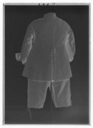 | Keywords: Jacka av grå kamlott. Tillhört Karl X Gustav (1622-1660) - Livrustkammaren - 18482-negative.tif Denna dräkt består av jacka byxor och kanoner av grå kamlott d'Hollande Materialet är gråbrun yllekamlott med en vådbredd av 77 cm utan stad 20x8 5 tr/cm2 Varpen består av 1ljus och 1 mörk tråd som tvinnats åt höger tillsammans och inslaget består av 3 ljusa otvinnade trådar Staden utgörs av enbart 2 vita trådar <br/><br/>Jackan som till sin form mycket påminner om jackan till dräkt nr 3419 är sydd av 4 storastycken som vidgats i sidorna och rundats i kanten Den har ca 37 cm öppna skört i sidornaoch bak Jackan har sytts ihop med korta sidosömmar och mitt bak endast till midjan Ärmarna består av 2 stycken och har öppna framsömmar Jackan är mitt fram 69 cm lång ståndkragen oräknad denna är 5 cm hög mitt fram och mitt bak 3 5 cm Mitt bak är jackan 73cm lång utan krage Den har sytts så att dess korta sidosömmar sömmen mitt bak ochaxelsömmarna sytts samman från baksidan <br/><br/>Ärmarna har sytts ihop så att överstyckena ligger ovanpå de undre i den utsvängda baksömmenoch ärmarna har sedan trätts genom ärmhålet Endast den lilla korta framsömmen 15 cmlång nedanför det ca 35 cm långa sprundet har sytts ihop från baksidan I baksömmen påärmen är den nedre - raka - delen ca 15 cm lång öppen för att kunna bilda uppslag och harhär försetts med en skoning av brun rips Jackan verkar ej ha haft något mellanfoder men iärmuppslagen sitter papper mellan fodret och tyget Detta utgör styvnad för denursprungliga fastsydda garneringen av silverspets ty täta hål efter stygn visar att mansytt genom pappret det har varit en ca 9 cm bred spetsbesättning Jackan är fodrad medsilvermoiré med en vådbredd av 49 cm utan stad 64x14 tr/cm2 Varp och inslag är av vittotvinnat silke I varje inslag ligger på rätan en silverlan Stad 0 7 cm 6 gröna 6 gula 6 gröna 6 gula 6 gröna trådar samt 1 tjock vit - ripsbindning Mitt i tyget syns en randefter vattringen <br/><br/>Jackans foder är skuret på samma sätt som tyget i övrigt dock har man omedelbart ovanförsidoskörtets öppning satt in 2 horisontella kilar för att göra plagget mindre åtstramande De är något varierande i storlek och placering men ca 1 cm långa Fram har jackan en helobruten rad av knapphål på vänster sida vilket ju icke är fallet med jackan nr 23 Det ärinalles 29 knapphål 3 5 cm långa och sydda med brunt högertvinnat silke över silkestråd 8stygn/cm På höger sida sitter utefter hela kanten 28 st d 2 cm knappar av vilka dockendast de 17 översta kunnat begagnas eftersom fodret täcker de följande På vänsterframstycke finns i sidokanten 15 knappar och på höger framstyckes sidokant 16 st svarandemot de 16 knapphål som sitter i sidostyckena och baksprundet Inte någon knapp i sprundenmitt bak eller i sidorna har kunnat knäppas ty fodret har hela vägen sytts över hålen Baktill finns på vänster stycke endast 13 knappar kvar På vänster ärms överstycke sitterav knappgarneringen endast 8 knappar kvar på höger ärm finns 14 knappar kvar Ärmarnasbakstycken har vardera 16 knapphål Ärmuppslagen har skoning av brun rips på kamlotten <br/><br/>Kragen som är försedd med styvnad av fiskben instoppade i oblekt linnelärft 19x18tr/cm2 i vertikala avsyningar på drygt ½ cm s avstånd har ursprungligen varit fodrad medljus taft på insidan Detta tyg saknas nu nästan helt I jackan sitter axelsömmarna 2 sthängslen av linnelärft 20x17 tr/cm2 klädda med gulvitt siden De är något kortare framåtän bakåt och har 3 tränsade hål i varje ända så att möjlighet att reglera byxorna längdföreligger Jackan är på ärmarna och längs sprunden översållad av trådrester av grått silke även något enstaka prov på blått silke som tyder på en ursprungligen fastsydd garneringrunt kanterna I 1675 och 1691 års inventarier anmärks också att spetsarna sprättats bort isamband med 1675 års kröning original caption decade 1650 woollen Färg grå d1 - dräkt - yttermaterial material ylle - silver d2 - dräkt - foder material silver LRK Karl X Gustav av Sverige Museum Tre Kronor / Ståthållarämbetet - STÄ tidigare Kungl Husgerådskammaren 1999-2013 Modelejon 2002 place of origin original filename LN_B10732_013612 58011 inventory number LRK 21476 18482 CC0 Jacka av grå kamlott Tillhört Karl X Gustav 1622-1660 - Livrustkammaren - 18482 tif <gallery caption Different images of same object > File Jacka av grå kamlott Tillhört Karl X Gustav 1622-1660 - Livrustkammaren - 1360 tif File Jacka av grå kamlott Tillhört Karl X Gustav 1622-1660 - Livrustkammaren - 9920 tif File Jacka av grå kamlott Tillhört Karl X Gustav 1622-1660 - Livrustkammaren - 27044 tif </gallery> |