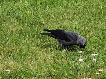Keywords: jackdaw corvus monedula black grey raven bird foraging
