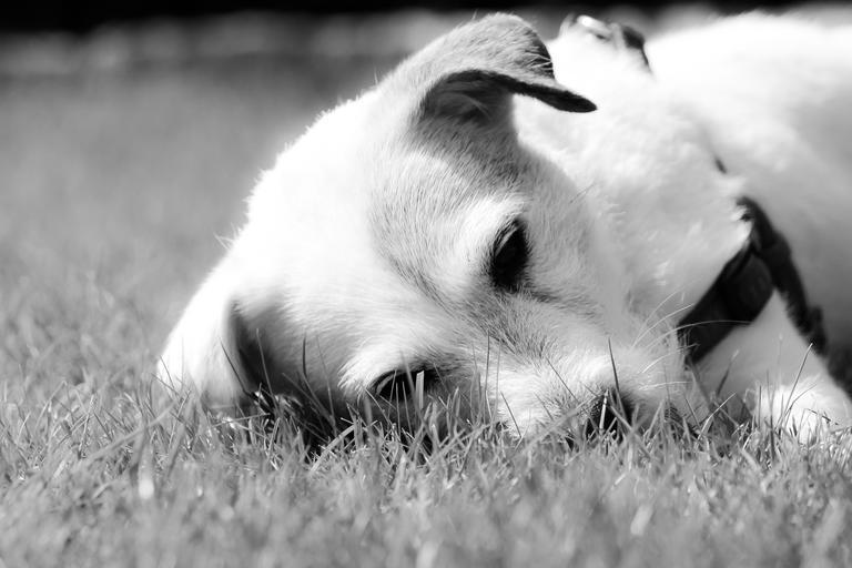Keywords: jackrussel dog hunter animal pet friend playmate cute small white animal world playful meadow grass hundeportrait sleep rest ears fur hide nose tableware button eyes paw carnivores short hair coarse hair