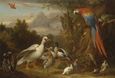 Keywords: jacob bogdani art painting oil on canvas ducks nature outside mountains forest trees woods geese birds parrot wildlife country countryside