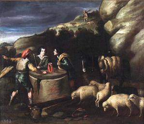 | Keywords: Jacob en el pozo, del taller de Pedro de Orrente (Museo del Prado).jpg La obra representa al patriarca Jacob que era hijo de Isaac y nieto de Abraham en el pozo Siglo XVII oil on canvas Size cm 76 63 Institution Museo del Prado https //www museodelprado es/coleccion/obra-de-arte/jacob-en-el-pozo/3dc84870-e176-43cf-91db-0e85e26705c5 accession number P04004 https //content3 cdnprado net/imagenes/Documentos/imgsem/3d/3dc8/3dc84870-e176-43cf-91db-0e85e26705c5/fb0a4999-aa6f-4239-92ed-88bdd143b1f6 jpg PD-old-100 Paintings of Jacob Paintings of Jacob in Spain Paintings by Pedro de Orrente's atelier Paintings by Pedro de Orrente in the Prado Museum 17th-century paintings in the Prado Museum |
