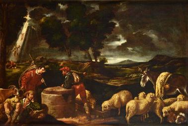 | Keywords: Jacob en el pozo, del taller de Pedro de Orrente. (Museo del Prado).jpg La obra representa al patriarca Jacob que era hijo de Isaac y nieto de Abraham en el pozo Primera mitad del siglo XVII oil on canvas Size cm 137 93 Institution Museo del Prado Depositado en el Museo Municipal del Almudí de Játiva https //www museodelprado es/coleccion/obra-de-arte/jacob-en-el-pozo/fa018d07-6694-4a1f-89b9-fae9e40101a4 accession number P04044 https //content cdnprado net/imagenes/Documentos/imgsem/fa/fa01/fa018d07-6694-4a1f-89b9-fae9e40101a4/13f6db25-8372-436e-8a90-2e3946f1ab50 jpg PD-old-100 Paintings of Jacob Paintings of Jacob in Spain Paintings by Pedro de Orrente's atelier Paintings by Pedro de Orrente in the Prado Museum 17th-century paintings in the Prado Museum Almodí de Xàtiva |