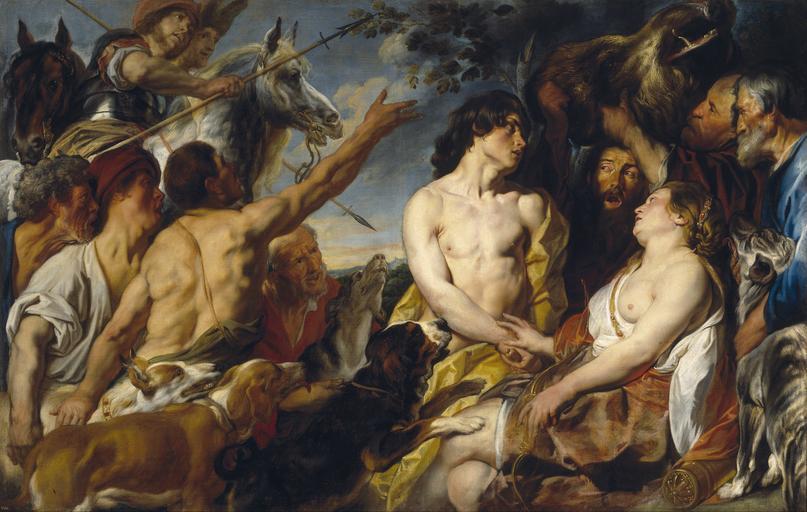 Keywords: Jacob Jordaens - Meleager and Atalanta, 1620-1650.jpg Artwork Creator Jacob Jordaens Meleager and Atalanta 1620-1650 oil canvas cm 152 3 240 5 Institution Prado Museum accession number object history credit line https //www museodelprado es/en/the-collection/online-gallery/on-line-gallery/obra/meleager-and-atalanta/https //www museodelprado es/imagen/alta_resolucion/P01546 jpg PD-old-100 Mythological paintings by Jacob Jordaens Meleager and Atalanta Paintings by Jacob Jordaens in the Prado Museum 17th-century oil on canvas paintings in Spain 17th-century mythological paintings 17th-century paintings in the Prado Museum Meleager presents head of Calydonian Boar to Atalanta Mythological paintings in Spain Cut-off heads in art People with dogs in art |