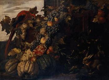| View Original: | Jacob van der Kerckhoven - Still life with fruit, parrot and rabbits (Allegory of Autumn).jpg (1000x731) | |||