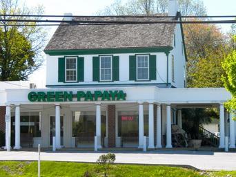 | Keywords: Jacob Zook House.JPG 95000127 en Jacob Zook House on the NRHP since February 24 1995 At 290 East Lincoln Highway near Exton in West Whiteland Township Chester County PA across from the Exton Square shopping mall In the shopping mall area is another older Zook House also on the NRHP The porch of this house was removed before the NRHP listing and replaced by the more commercial walkway seen in this photo It now houses the Green Papaya fast food restaurant own Smallbones 2010-04-23 40 1 44 N 75 37 27 W National Register of Historic Places in Chester County Pennsylvania Houses in Pennsylvania Fast food restaurants in Pennsylvania |