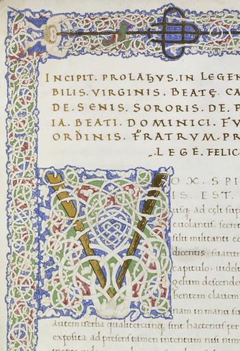 | Keywords: Jacobus Macharius Venetus - Legenda San Catherinae de Senis - Walters W350 - Obverse Detail.jpg ca 1470 Renaissance parchment folio cm 33 5 23 6 accession number W 350 20552 Library of Gonzaga Marquis dukes of Mantua arms on fol 110r Museo Cavaleri Milan date and mode of acquisition unknown stamp on fol 1r Demoulard publisher date and mode of acquisition unknown Pietro Vergani date and mode of acquisition unknown Sale Charles Butler Hatfield date of acquisition unknown by purchase Sale William Morris date of acquisition unknown by purchase Sale London 1898 no 345 Laurence W Hodson 1898 by purchase Sale London 1906 no 109 Quaritch 1906 by purchase Olschki date and mode of acquisition unknown Henry Walters Baltimore after 1912 inv no 30433 list of ca 1912 no 53 Walters Art Museum Henry Walters Acquired by Henry Walters Mostra di Codici Gonzaghesch Mantua Biblioteca Comunale Teresiana Mantova 1966 Manuscript Painting in the Renaissance The Walters Art Gallery Baltimore 1989-1990 Renaissance Books and Manuscripts of the Humanist Age The Walters Art Gallery Baltimore 1994-1995 Dressed in Gold Books of the Italian Renaissance The Walters Art Museum Baltimore 2005-2006 The Saint John's Bible A Modern Vision through Medieval Methods The Walters Art Museum Baltimore 2009 place of origin Siena Italy Walters Art Museum license 2D Media contributed by the Walters Art Museum needs artist review Walters MS W350 - Legenda San Catherinae de Senis V as an initial |