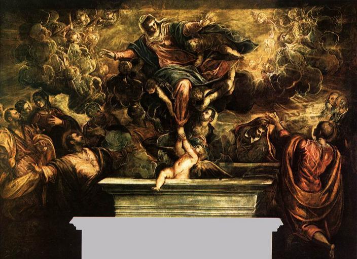 | Keywords: Jacopo Tintoretto - The Assumption of the Virgin - WGA22601.jpg Artwork Creator Jacopo Tintoretto other date between 1582 1597 Oil on canvas size cm 425 587 Institution Scuola Grande di San Rocco Venice object history credit line accession number WGA link 22601 http //www wga hu/art/t/tintoret/3b/3ground/8assum jpg http //www wga hu/html/t/tintoret/3b/3ground/8assum html PD-old-100 painting religious Italian 1551-1600 Paintings by Tintoretto in Scuola Grande di San Rocco - Sala terrena 16th-century paintings of Assumption of Mary WGA form painting WGA type religious WGA School Italian WGA time period 1551-1600 Blue and red clothing in art 16th-century paintings of angels with humans |