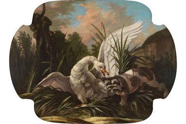 | Keywords: Jacques-Charles Oudry, Hunting Scenes. Oil on canvas, a pair, 1 mid 18th century.jpg 1768 oil canvas cm 120 160 accession number http //www sothebys com/en/auctions/ecatalogue/2010/mobilier-orfvrerie-et-tableaux-anciens-provenant-de-l39ancienne-collection-de-madame-antenor-patio-pf1037/lot 295 html Sotheby's Paris 22 - 23 September 2010 lot 295 object history credit line exhibition history J C Oudry f 1768 signature and date Artdaily com <nowiki>File Jacques-Charles Oudry - Chien barbet attaquant un cygne 1768 jpg</nowiki> PD-old-100 Jacques-Charles Oudry Swans in 18th-century art Swans in painting 18th-century paintings of dogs Cygnus olor aggression Aggression in dogs 1768 paintings Dogs with other animals Swans in art of France |